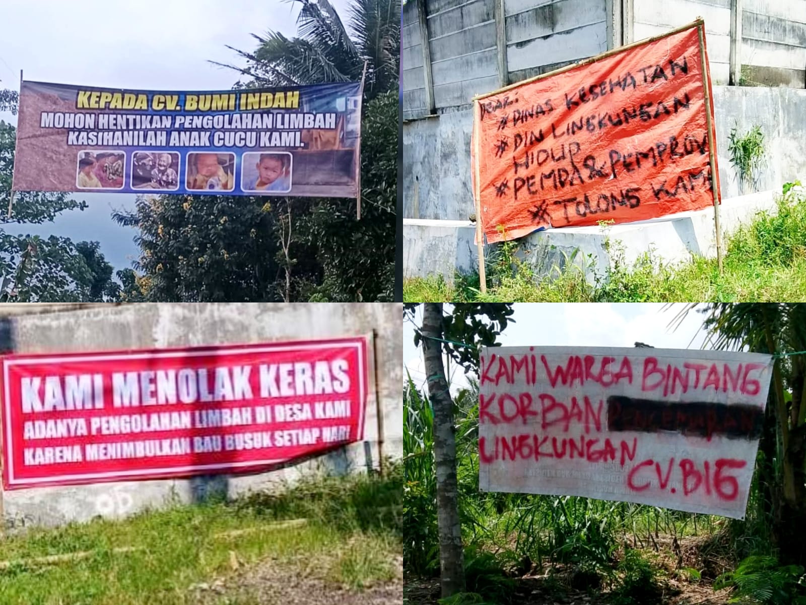 Aksi protes itu tidak lagi sekadar keluhan lisan. Warga memasang sejumlah spanduk bernada kecaman di sekitar lokasi, sebagai simbol perlawanan atas kondisi yang mereka sebut kian tak manusiawi. Berita ini sangat viral di dunia medsos yang berisikan kecaman terhadap CV. Bumi Indah.
