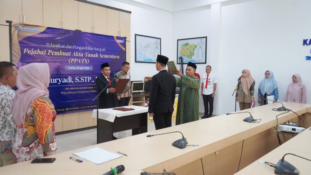 JEMBER, Wartatranspansi.com – Kantor Pertanahan Kabupaten Jember kembali memperkuat sinergi administratif dalam pelayanan pertanahan melalui pelaksanaan Pelantikan dan Pengambilan Sumpah Jabatan Pejabat Pembuat Akta Tanah Sementara (PPATS) pada Kamis (23/04/2026).