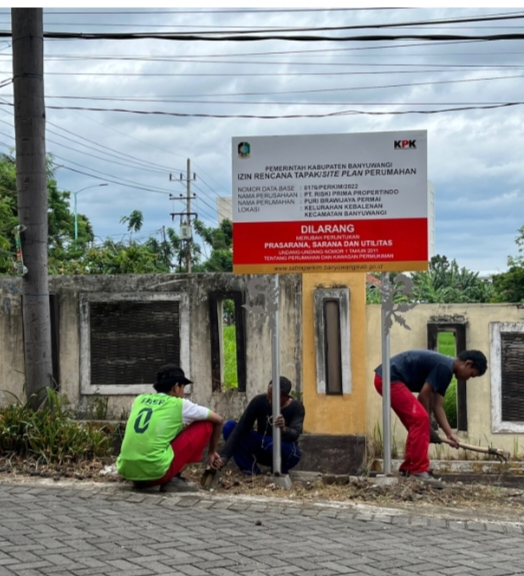 BANYUWANGI, Wartatransparansi.com – Dinas Pekerjaan Umum, Cipta Karya, Perumahan, dan Permukiman (PU CKPP) Kabupaten Banyuwangi menginformasikan terkait Pemasangan papan informasi perizinan ini sebagai salah satu upaya Pemerintah Kabupaten Banyuwangi. Menjalankan amanah Undang-Undang No 1 Tahun 2011 Pasal 146 yaitu Badan hukum yang membangun Lisiba dilarang menjual kaveling tanah matang tanpa rumah.
